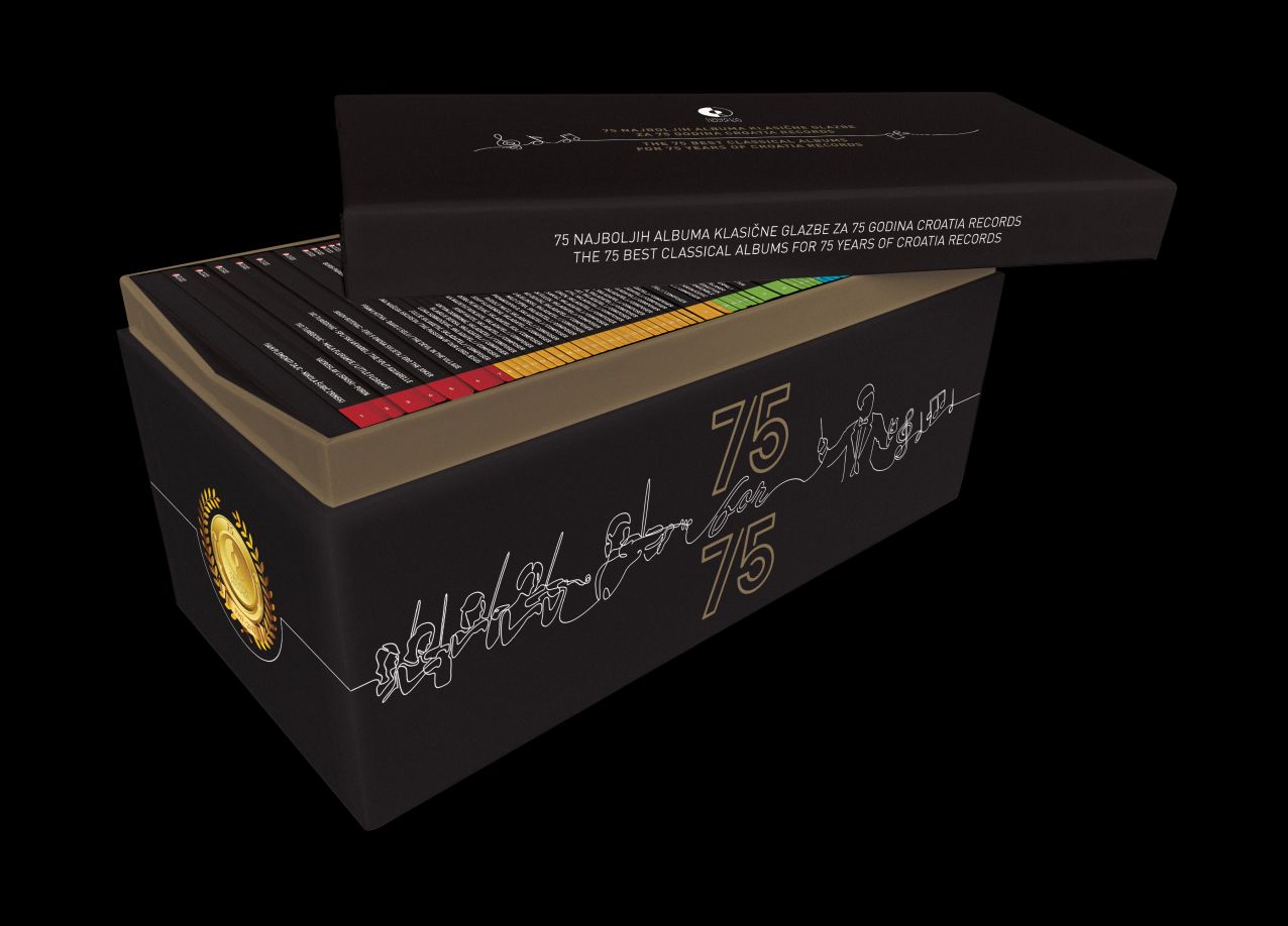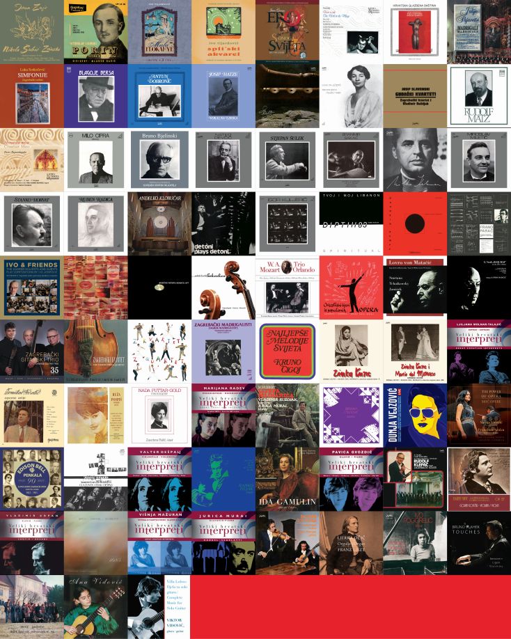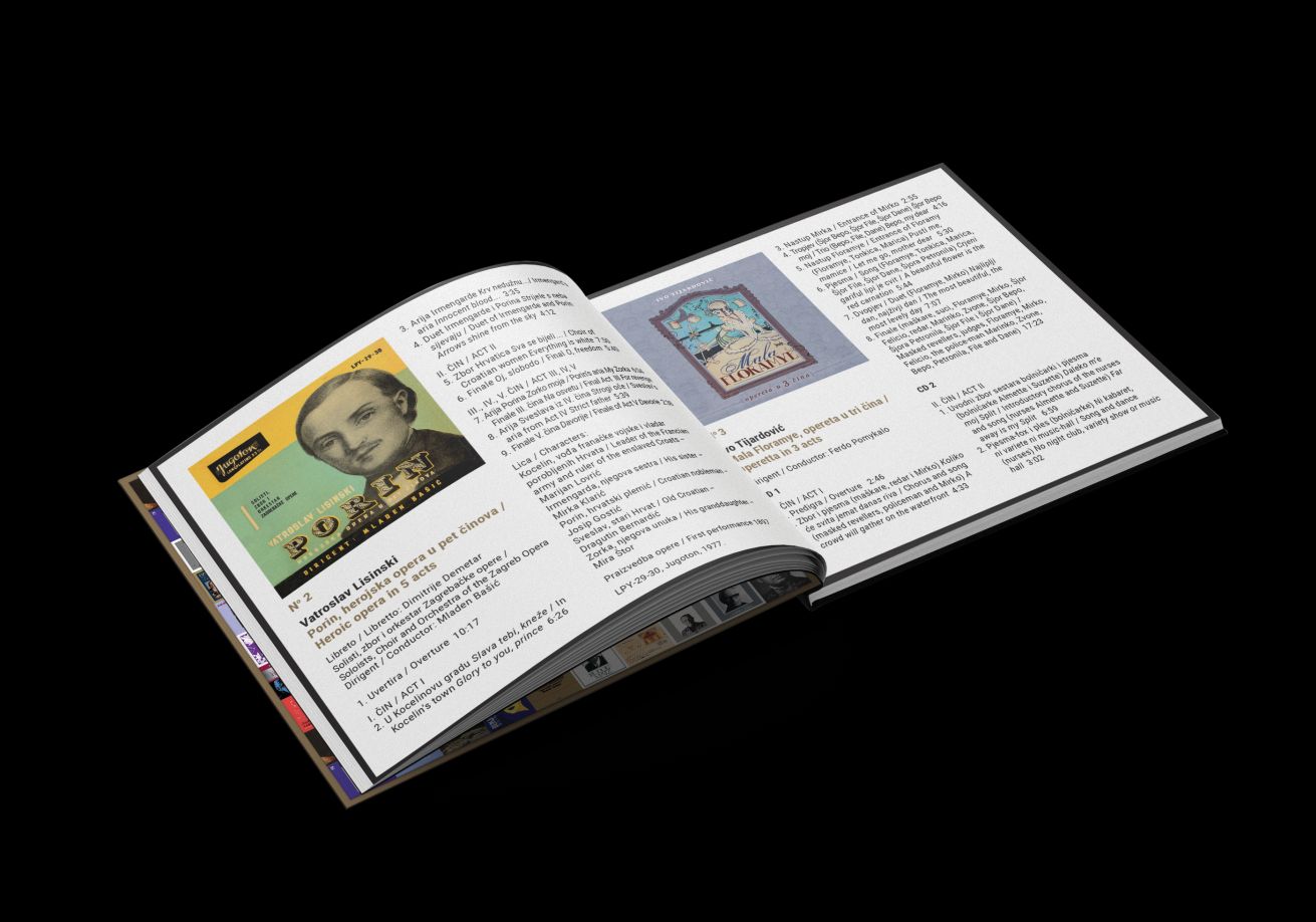 The albums in the box set are divided into 5 sections, visually marked by color – red: Opera, operetta, oratorio, ballet; yellow: Croatian composers; green: Great conductors and ensembles; blue: Singers; purple: Soloists.