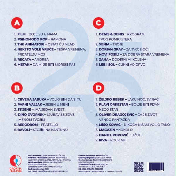 Besplatna dostava u Hrvatskoj za narudžbe iznad 50 EUR Prednarudžbe su otvorene za odabrana vinil izdanja Službeni webshop Croatia Recordsa Nova izdanja svakog tjedna Besplatna dostava u Hrvatskoj za narudžbe iznad 50 EUR Prednarudžbe su otvorene za odabrana vinil izdanja Službeni webshop Croatia Recordsa Nova izdanja svakog tjedna